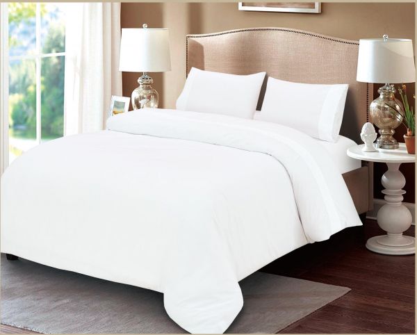 סט מצעים זוגי לבן מלטף ומפנק , סאטן אל - קמט , חלק , משולב תחרה .