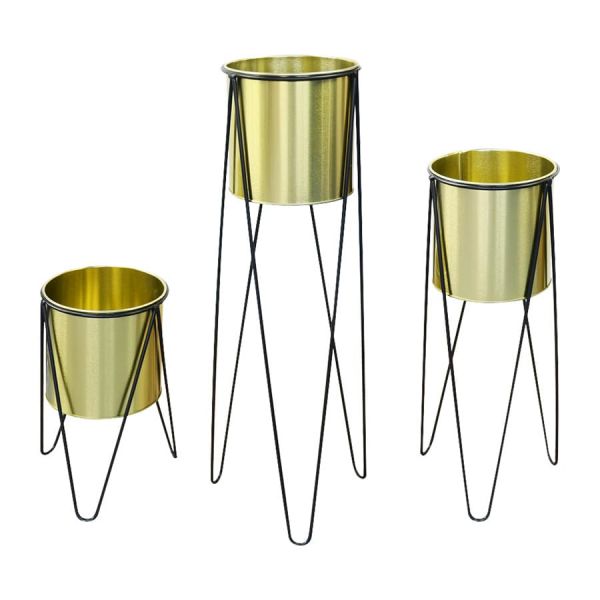 שלישיית מעמדים לעציץ פרזול זהב שחור